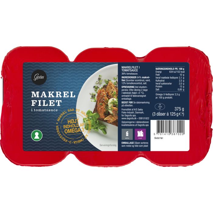 Die Gestus Makrele in Tomatensauce bietet einen kostlichen Genuss fur Fischliebhaber. Dieses Produkt kommt in einem praktischen 3er-Pack mit insgesamt 375 g. Die Makrelenfilets sind in einer leckeren Tomatensauce eingelegt.